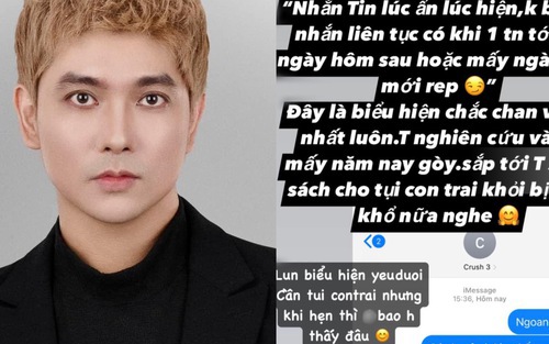 Tim chia sẻ: "Nhắn tin lúc ẩn lúc hiện, không bao giờ nhắn liên tục, có khi một tin nhắn tới cả ngày hôm sau hoặc mấy ngày sau mới trả lời. Đây là biểu hiện chắc chắn và rõ nhất luôn. Luôn biểu hiện yếu đuối, cần tụi con trai nhưng khi hẹn thì không bao giờ thấy đâu".