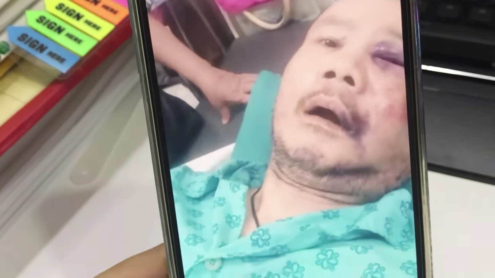 Trong clip ca sĩ Cam Thơ đăng tải, có thể thấy Tô Thanh Phương bị chấn thương nặng ở mặt, xây xát và tụ máu khá nhiều, nói chuyện khó khăn, không cầm được điện thoại, khiến ai cũng xót xa.