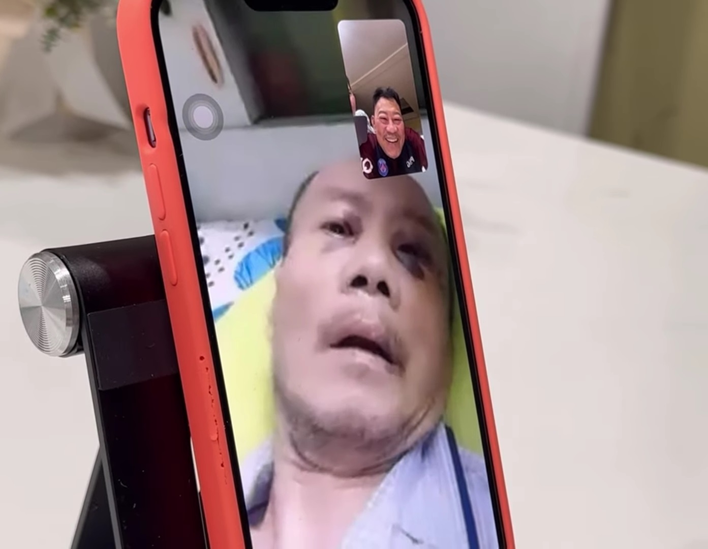 Vợ Tô Thanh Phương cho biết, anh hiện yếu quá nên không ngồi được, nhưng vẫn cố nhìn vào điện thoại để thấy mặt Lê Quang và hỏi thăm: “Khỏe không Quang? Lâu quá rồi Quang ơi! Quang nhớ Việt Nam không? Gặp Lê Quang khớp quá nói không được”.