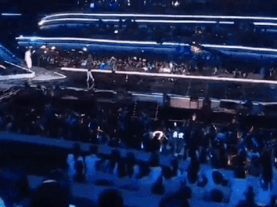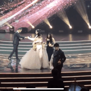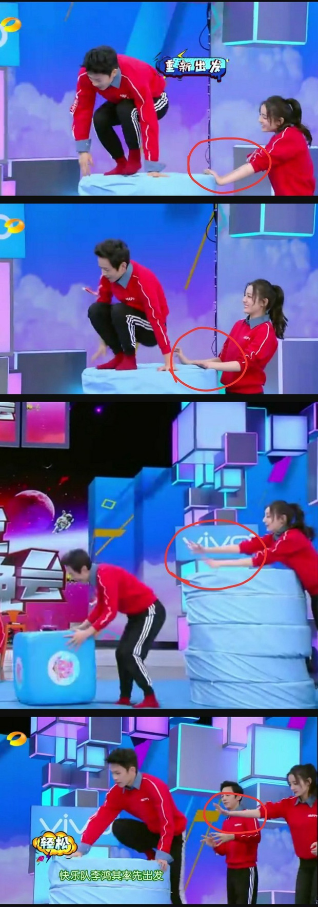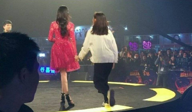 Tại sân khấu 1 sự kiện, trong khi MC nam Trương Đại Đại đang chờ khách mời thì ngay lập tức Nhiệt Ba - dù đang mặc váy ngắn và đi giày cao gót - đã chạy tới nắm tay cô gái kia