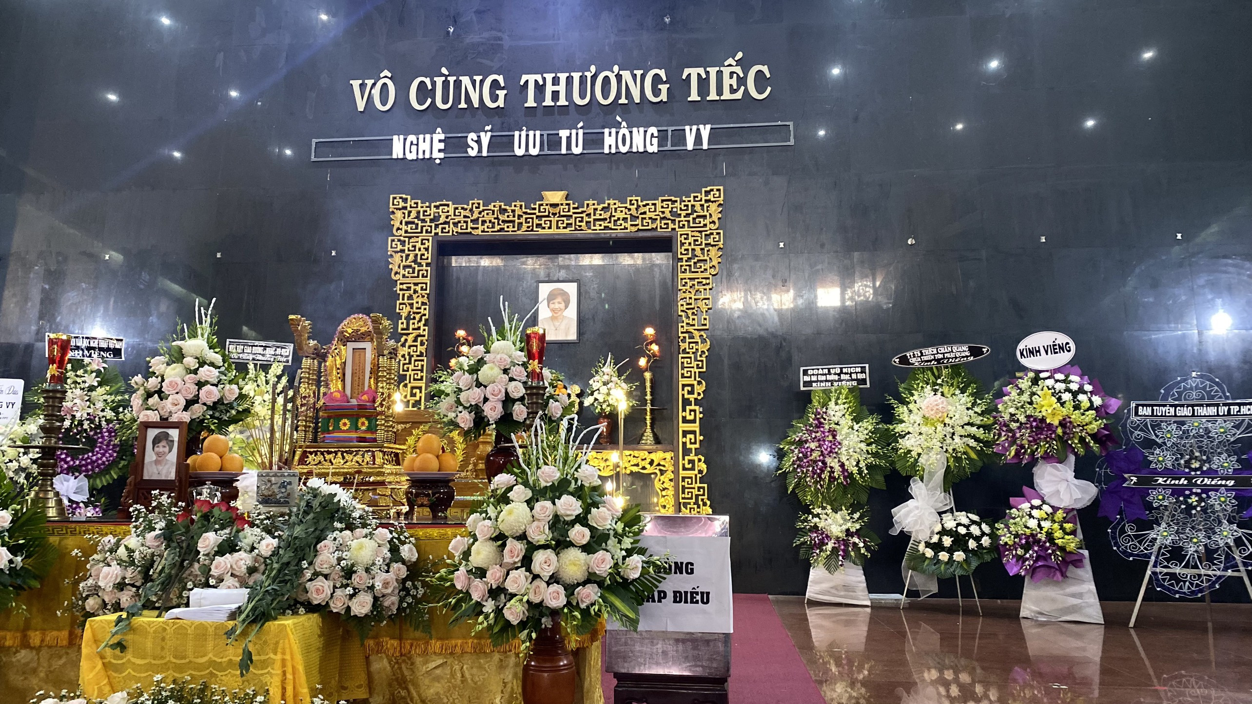 Sáng nay (8/5), đông đảo người thân và bạn bè có mặt từ sớm tại Nhà tang lễ quốc gia phía Nam (Quận Gò Vấp, TP.HCM) để phúng viếng, tiễn đưa NSƯT Hồng Vy về nơi an nghỉ cuối cùng.