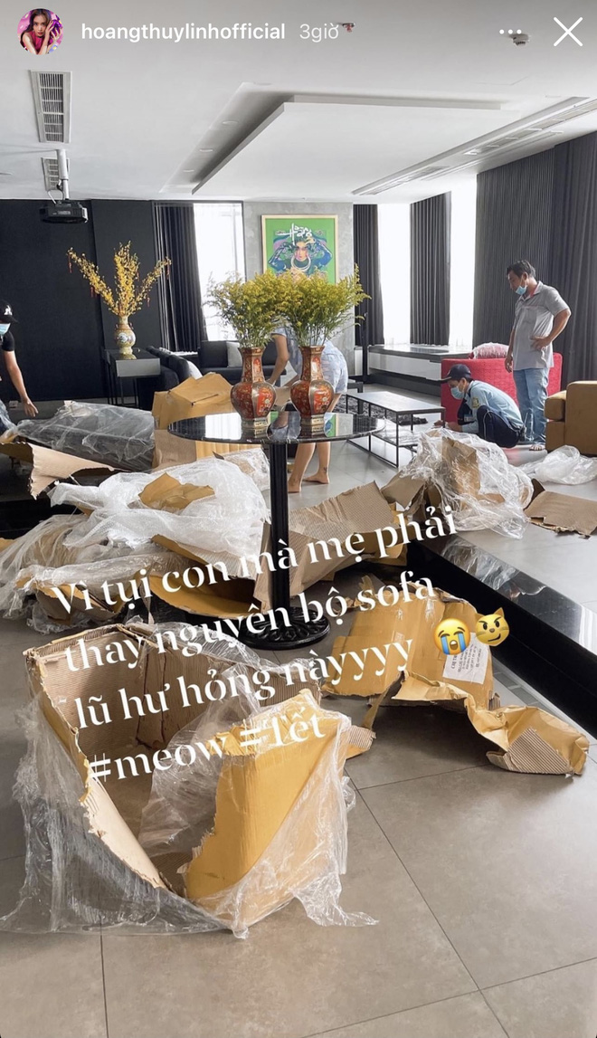 Hoàng Thuỳ Linh thì phải sửa nhà và thay ghế bởi lũ "con" đã làm hỏng.