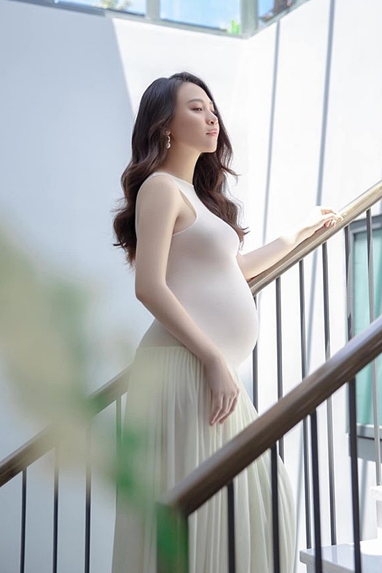 Đặng Thu Thảo mũm mĩm trong bức ảnh trước ngày sinh. Đi kèm là dòng chia sẻ chuyện mang thai con trai mà Hoa hậu Việt Nam 2012 giữ bí mật suốt thai kỳ.