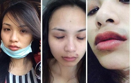 Vết tích những trận đòn roi của người chồng vũ phu trên gương mặt hoa hậu Diễm Hương. |