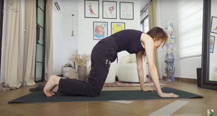 Sau đó, Kỳ Duyên sẽ tự chuẩn bị bữa ăn sáng tại nhà. Cô nấu những món ăn healthy để giảm cân như bún ức gà, bánh mì nguyên cám, salad... Căn bếp của Kỳ Duyên cũng theo tông màu trắng sang trọng và có đầy đủ những thiết bị hiện đại như máy rửa bát, lò nướng, nồi chiên không dầu, tủ lạnh lớn...