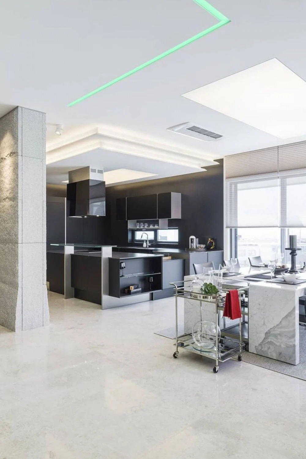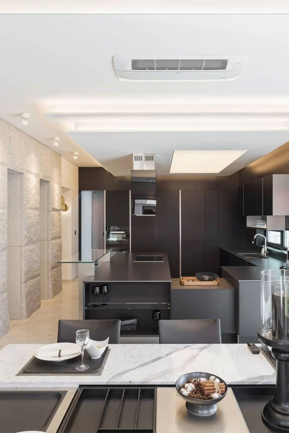 Được thiết kế sang trọng với sự kết hợp trang nhã giữa đá cẩm thạch và bê tông, căn hộ áp mái hiện đại này được trang trí với đồ đạc và nội thất sang trọng. Ngôi nhà có nhiều tính năng hiện đại, bao gồm nhà bếp được trang bị với nhiều loại thiết bị.