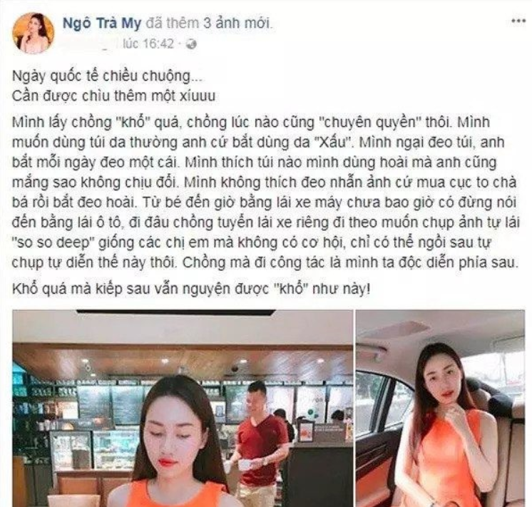 Trà My đã từ chối "xuất khẩu" đi thi Miss Universe - Hoa hậu Hoàn vũ Thế giới 2016 và gây bất ngờ khi vội "lên xe hoa" cùng với bạn trai hơn 13 tuổi sau khi đăng quang chỉ vài tháng. Trong khi đó, cô em Ngô Thanh Thanh Tú cũng từ chối đại diện Việt Nam thi Miss International - Hoa hậu Quốc tế 2018 mà lựa chọn trở thành một BTV. Sau đó không lâu, cô em gái của Trà My cũng theo chồng về dinh. Được biết, cô kết hôn với một doanh nhân hơn cô đến 16 tuổi và đã có một đời vợ - Nguyễn Thành Phương.