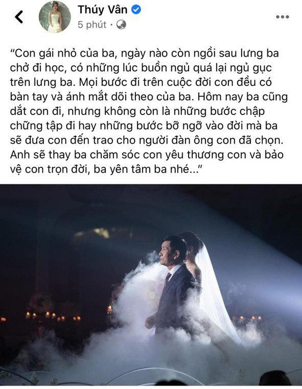 Tối hôm nay (25/9), Thúy Vân và doanh nhân Nhật Vũ đã tổ chức lễ cưới với sự tham dự của gia đình hai bên, bạn bè thân thiết tại một trung tâm tiệc cưới sang trọng ở TP.HCM. Ngay từ sớm, mọi khâu chuẩn bị cho ngày trọng đại đã hoàn tất và để đảm bảo an ninh, ngoài gia đình, các khách mời muốn vào bữa tiệc đều phải mang theo thiệp. Tuy nhiên, khi thời gian cử hành hôn lễ chính thức diễn ra, những khoảnh khắc đáng giá nhất đều được cặp đôi thoải mái công khai với truyền thông, khán giả.