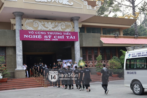 8h20: Ngô Kiến Huy, Huỳnh Phương buồn bã, NS Tấn Beo cùng dàn nghệ sĩ đến nhà tang lễ, chuẩn bị đón linh cữu cố nghệ sĩ Chí Tài