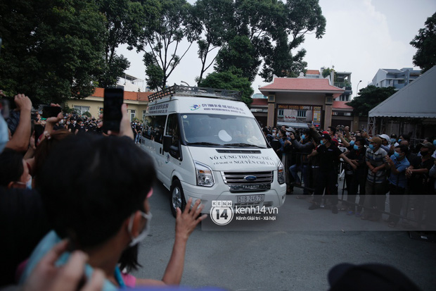 17h45: NS Hoài Linh dẫn đầu đoàn, chấp tay cảm tạ khán giả. Người hâm mộ đồng loạt vẫy tay chào cố nghệ sĩ Chí Tài