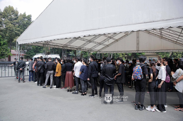10h10: NS Hoài Linh thông báo, đúng 10h25 sẽ cho người hâm mộ vào bên trong nhà tang lễ. Dàn nghệ sĩ xếp hàng nghiêm chỉnh