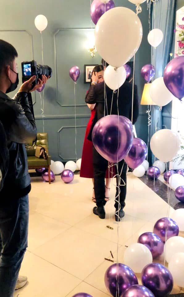 Buổi cầu hôn của cặp đôi diễn ra trong không gian lãng mạn, ấm cúng, trước sự chứng kiến của bạn bè thân thiết.