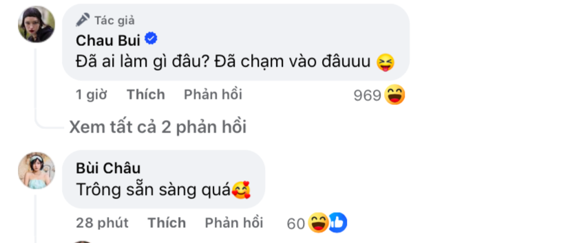 Châu Bùi và Binz là cặp đôi từ khi lộ hint đến chính thức công khai yêu đều nhận được sự yêu mến, ủng hộ của công chúng. Sau hơn 4 năm bên nhau, ai cũng mong chờ đôi "trai tài gái sắc" nhanh chóng đi đến cái kết viên mãn. Không chỉ cư dân mạng mà dường như người trong cuộc cũng đang rất nôn nao. Sau màn tung "giấy đăng ký kết hôn pha ke" với Binz để "dằn mặt" Duy Khánh, thì mới đây Châu Bùi lại tiếp tục "phát tín hiệu" khiến cư dân mạng chấm hóng.