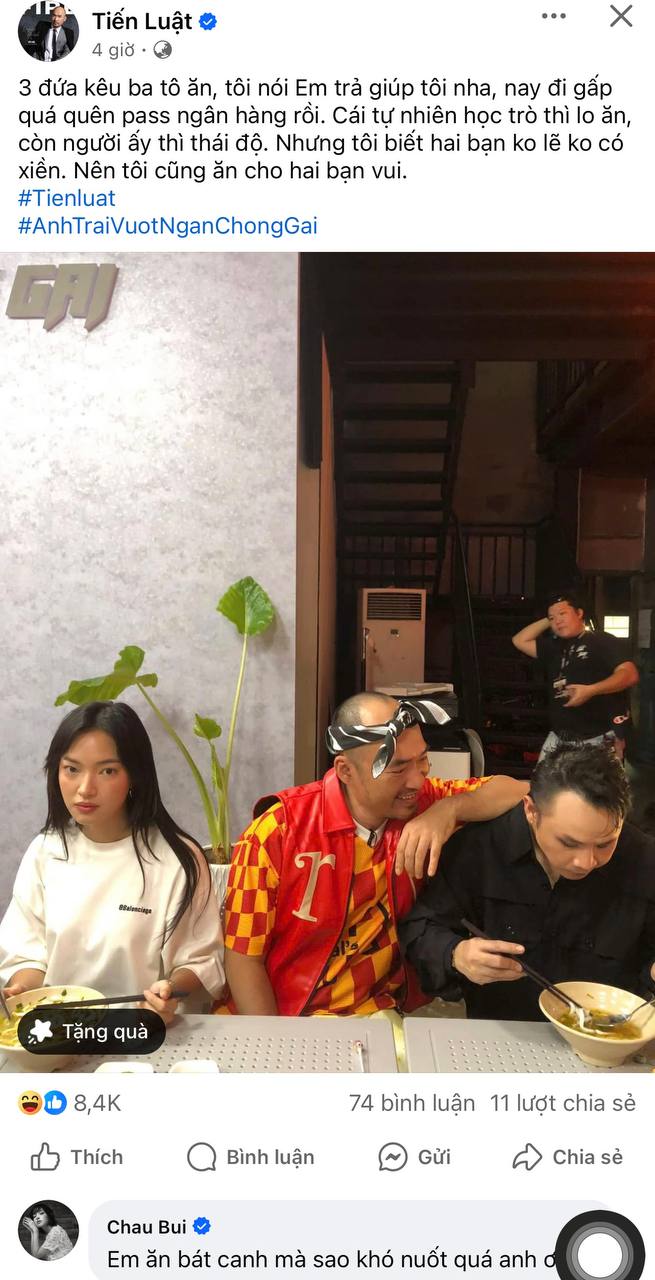Trước đó, Châu Bùi "dở khóc dở cười" khi được mẹ gửi tin nhắn động viên vì ngỡ cô và Binz đang rạn nứt. Nguồn cơn là vì những tương tác mang tính "ghen tuông" hài hước của Châu Bùi vì Binz cứ "dính như sam" với Tiến Luật.