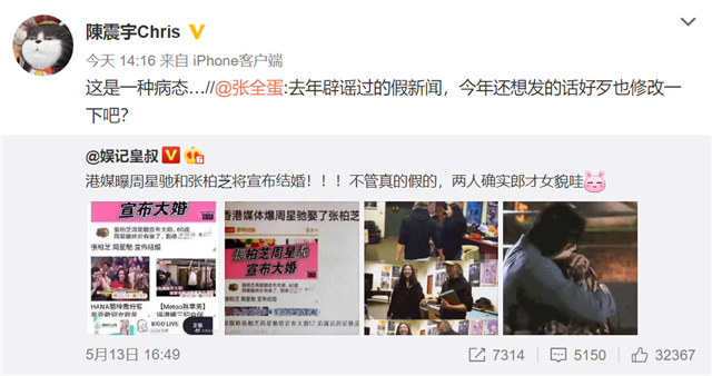 Nội dung của tin đồn này thực sự rất giống với những gì xuất hiện vào năm ngoái. Vào thời điểm đó, studio của Trương Bá Chi cũng đã lên tiếng đính chính về những tin đồn này và nói rằng, đám cưới của Trương Bá Chi và Châu Tinh Trì là giả.