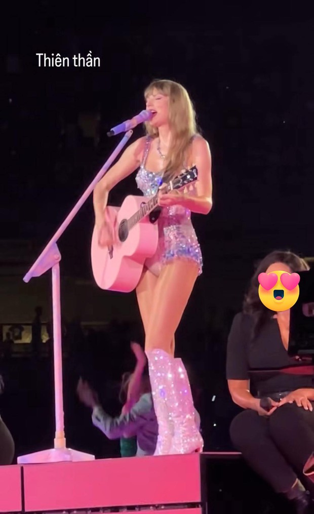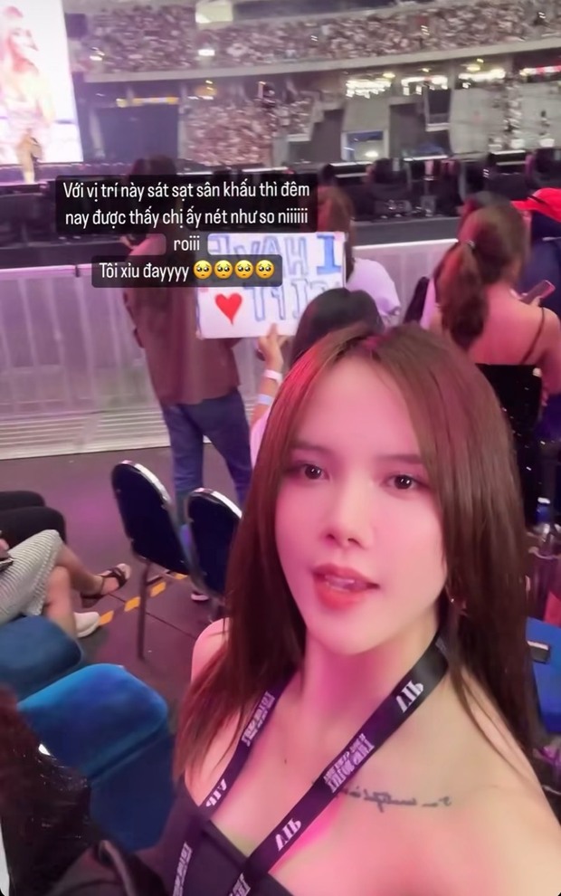 Đáng chú ý, Thiều Bảo Trâm khiến nhiều người trầm trồ khi tiết lộ vị trí đứng xịn xò để dễ dàng theo dõi các màn trình diễn của Taylor Swift. Qua đó, nữ ca sĩ thích thú chia sẻ: "Với vị trí này sát sạt sân khấu thì đêm nay được thấy chị ấy nét rồi. Tôi xỉu đây". Ở một cảnh quay Taylor Swift, Thiều Bảo Trâm khiến nhiều người trầm trồ với góc view đỉnh chóp.
