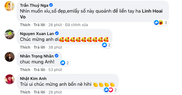 Bài đăng của anh Bốn nhanh chóng nhận được sự quan tâm lớn từ phía khán giả. Phía dưới phần bình luận, nhiều nghệ sĩ trong showbiz Việt như: Thúy Nga, Xuân Lan, Nhật Kim Anh,... đã gửi những lời chúc mừng đến nam danh hài Hoài Linh.