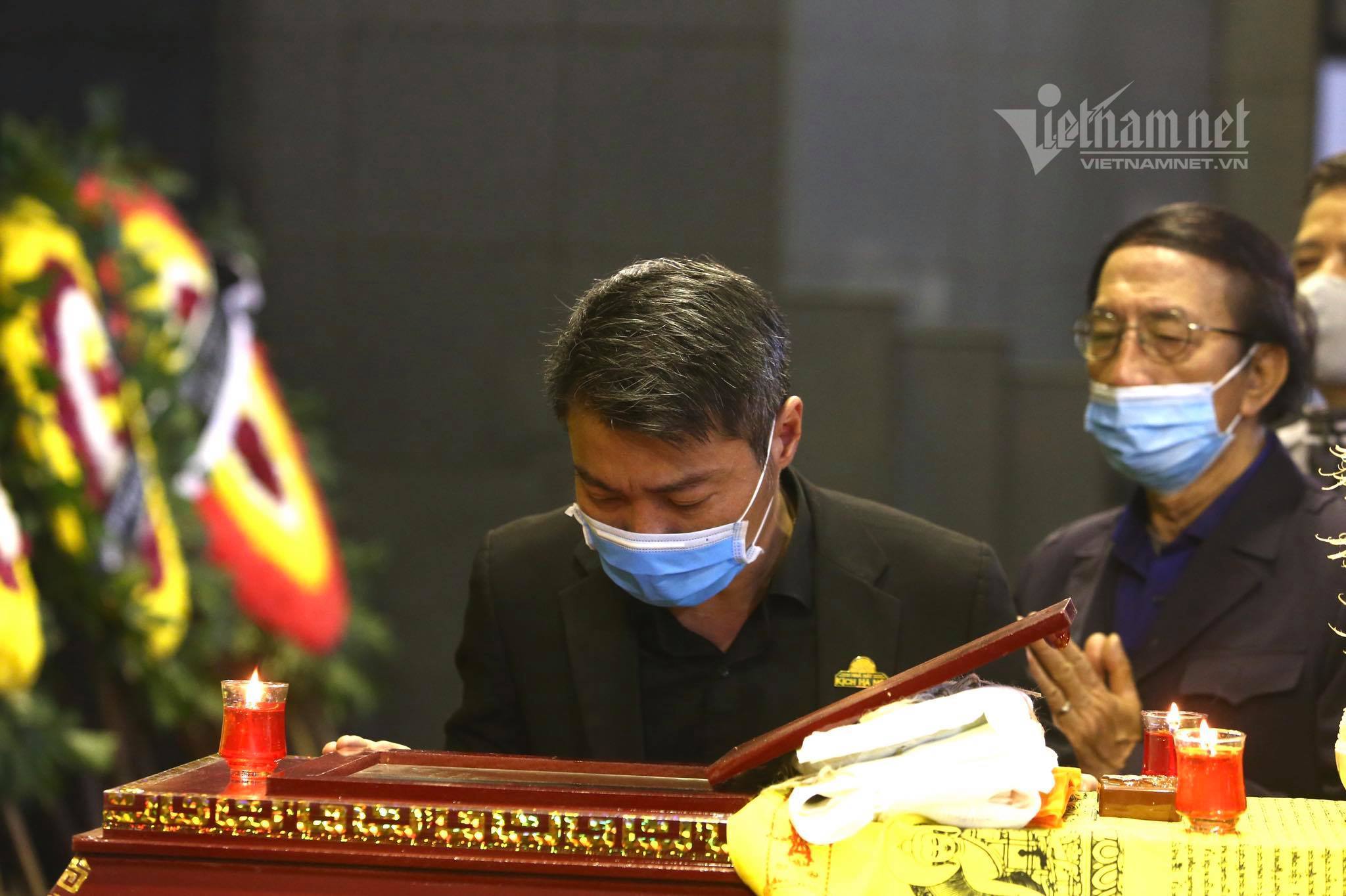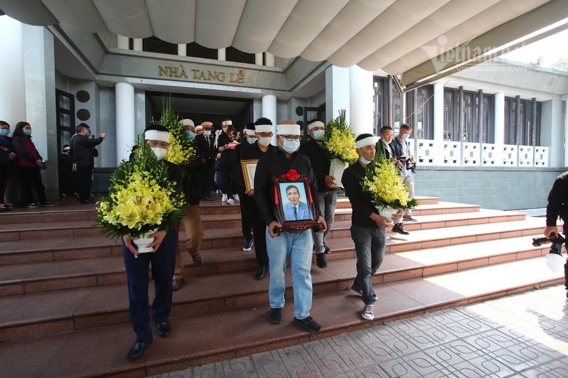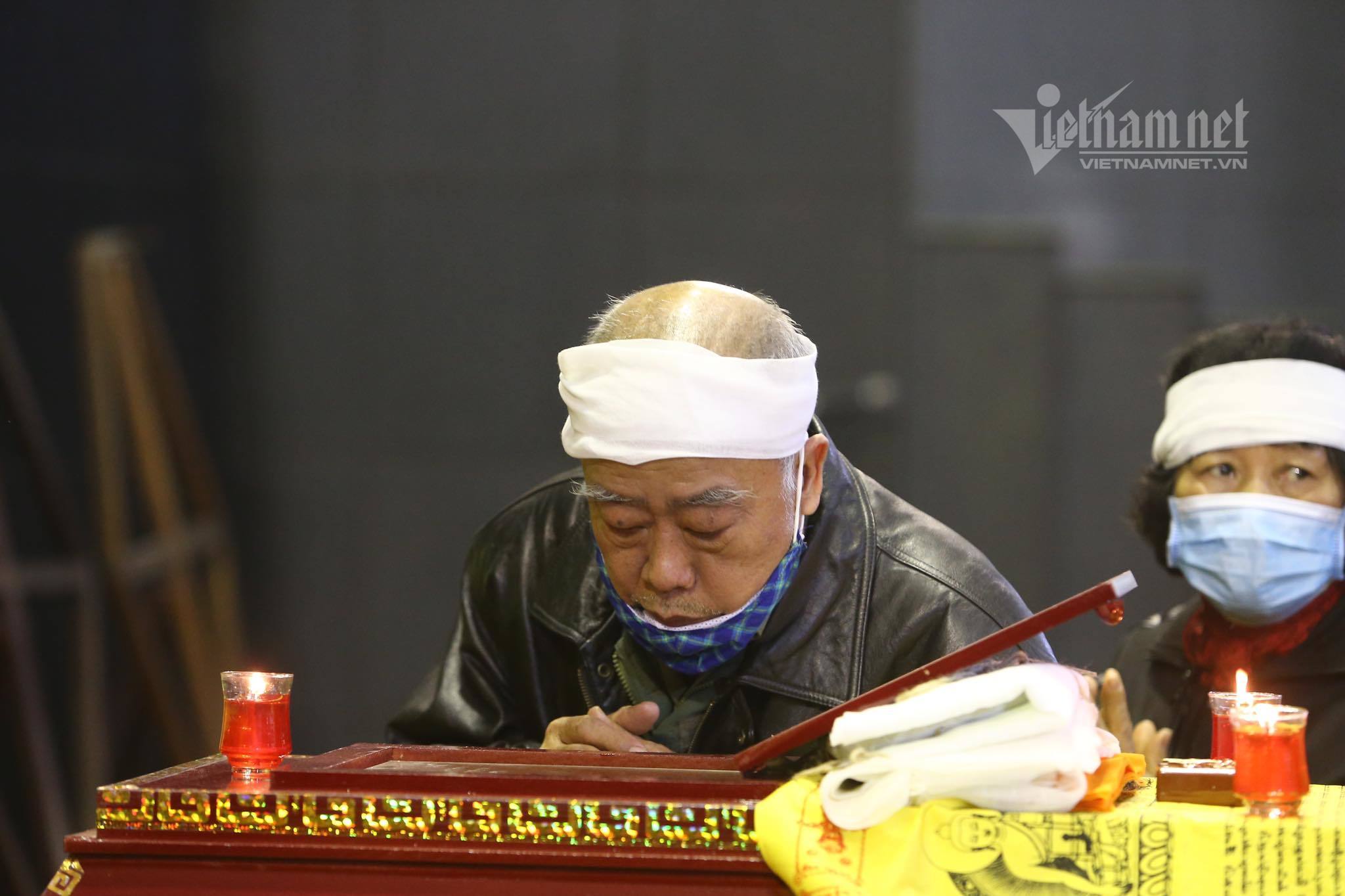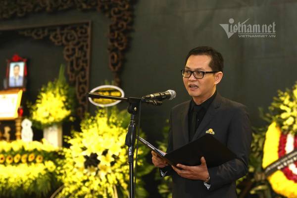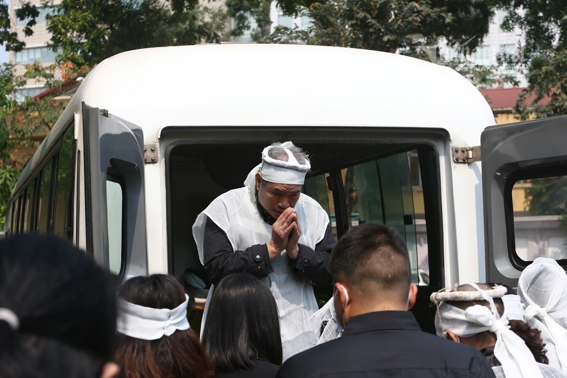 Đúng 10h45, lễ truy điệu và đưa tang 10h45 diễn ra trong không khí xúc động. NSND Trung Hiếu đọc điếu văn tiễn đưa nghệ sĩ.