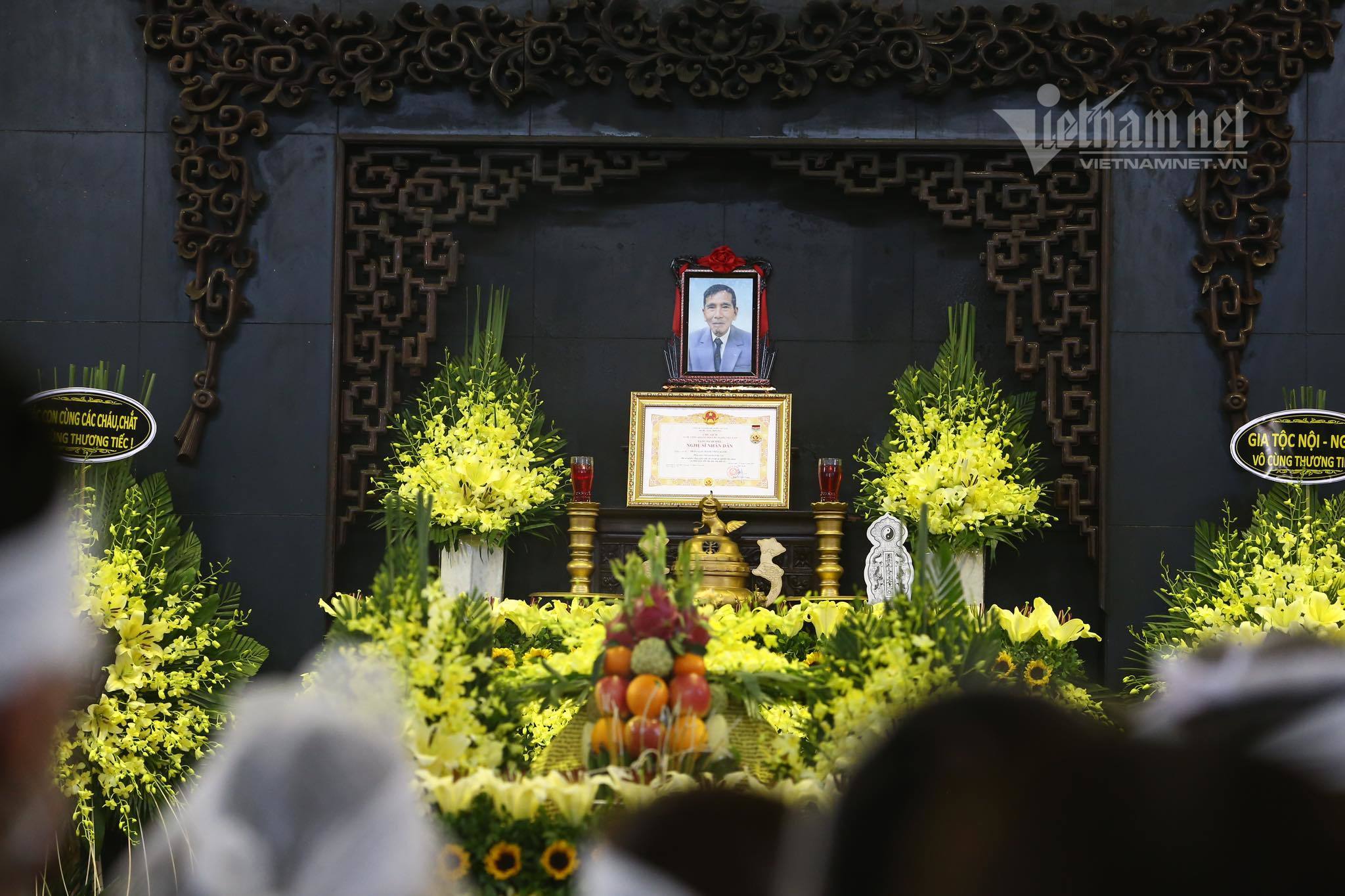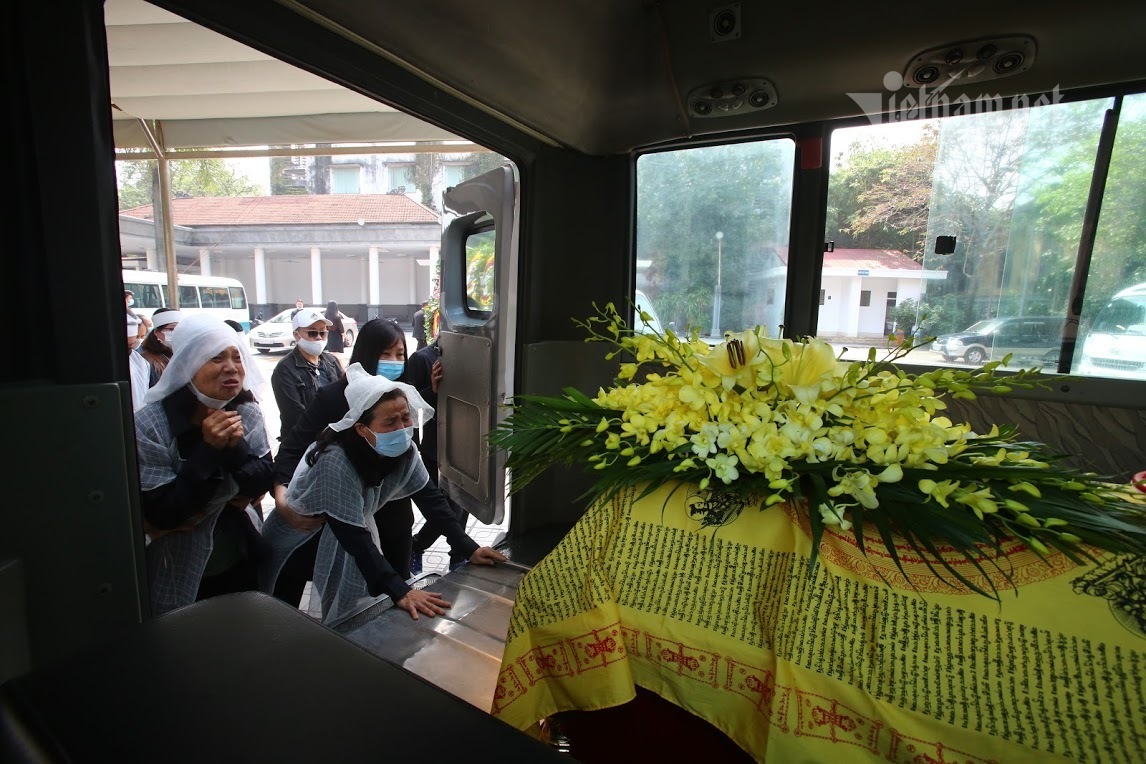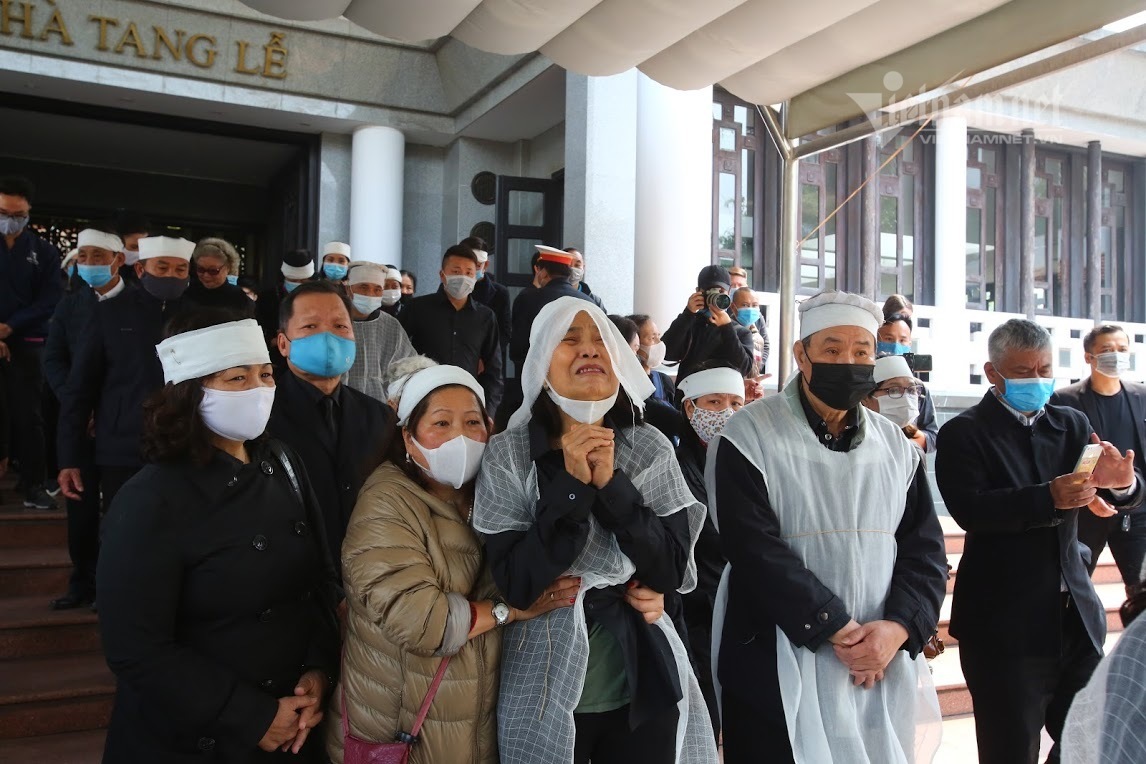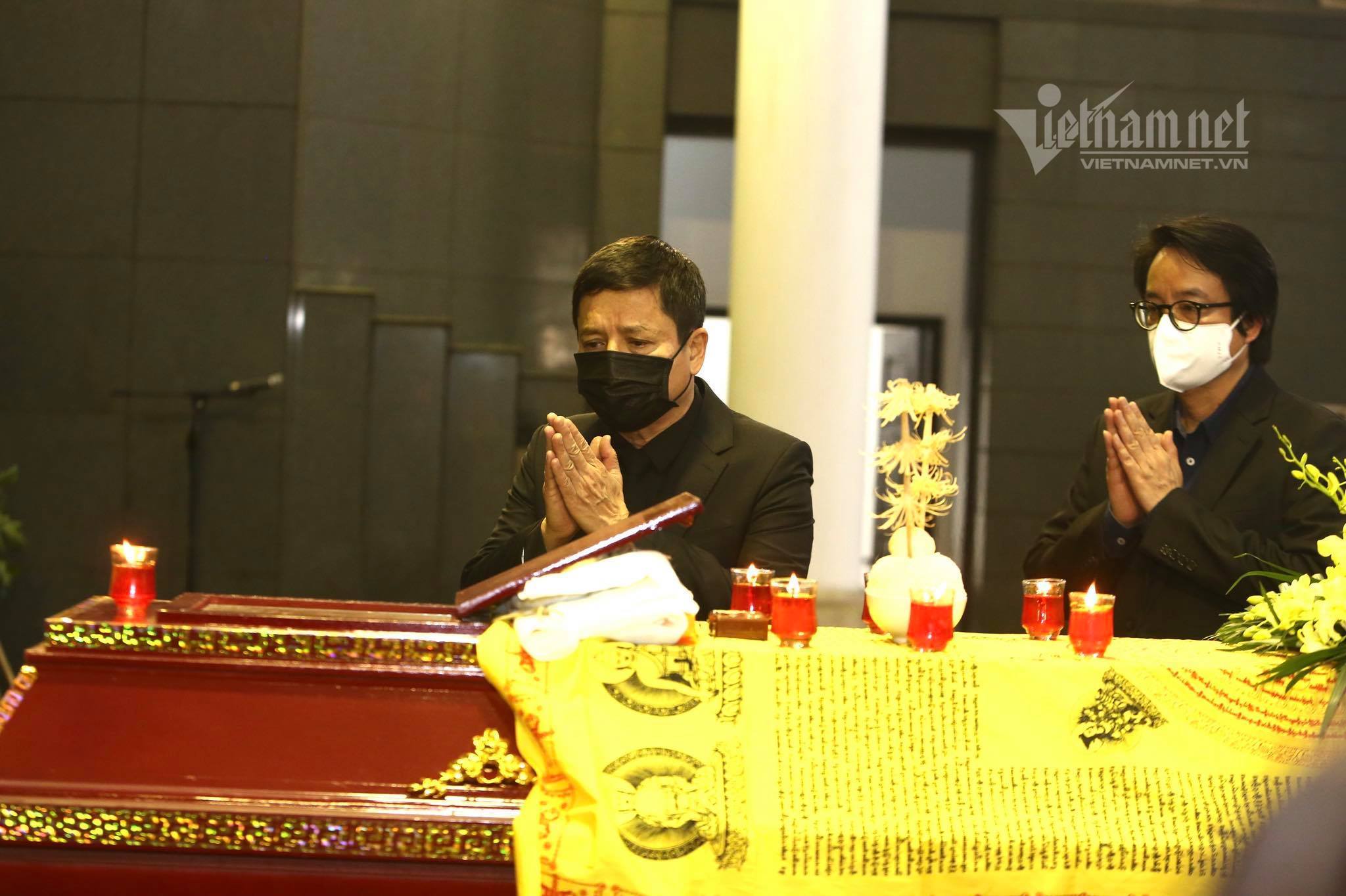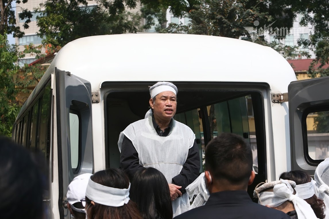 Đúng 10h45, lễ truy điệu và đưa tang 10h45 diễn ra trong không khí xúc động. NSND Trung Hiếu đọc điếu văn tiễn đưa nghệ sĩ.
