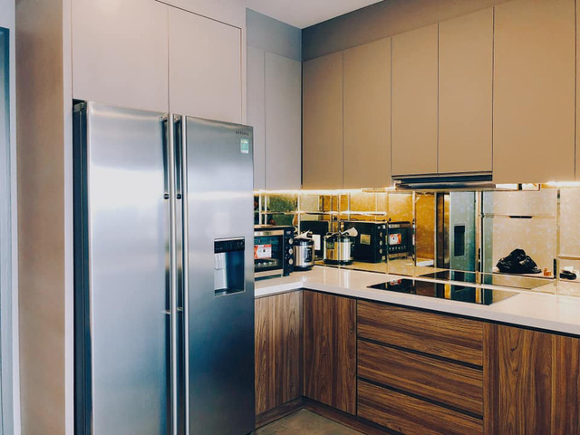 Đặc biệt, căn nhà này được vợ chồng Kiều Anh trang bị hệ thống smarthome như đèn cảm ứng, điều khiển đèn và TV qua giọng nói, cảm biến cửa, điều hòa tự động,... Góc mà ca nương này yêu thích và đầu tư nhiều nhất là căn bếp hiện đại.