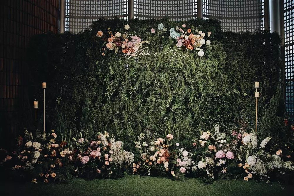 Trước đó, cô và ông xã từng có ý định tổ chức hôn lễ giữa một cánh rừng thật ở Đà Lạt, tuy nhiên do điều kiện không cho phép và nhiều yếu tố khách quan, cả hai quyết định mô phỏng vẻ đẹp thiên nhiên ấy trong đám cưới của mình tại TP.HCM.
