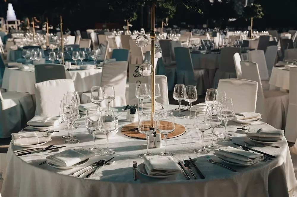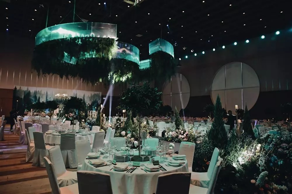 Nếu như lễ gia tiên buổi sáng lấy cảm hứng từ những đám cưới miền Tây thập niên 70 - 80, gợi cảm xúc từ những điều dân dã, bình dị..., thì tiệc tối của vợ chồng Liêu Hà Trinh đưa mọi người vào không gian xanh mướt của những cánh rừng ở Bắc Âu.