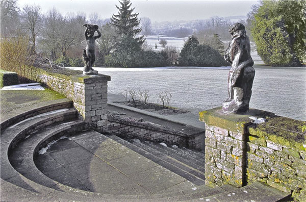 Những bức tượng cổ tạo điểm nhấn cho tường bao cổ tại một góc của căn biệt thự.