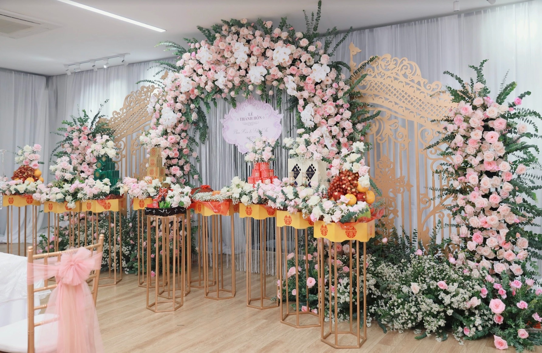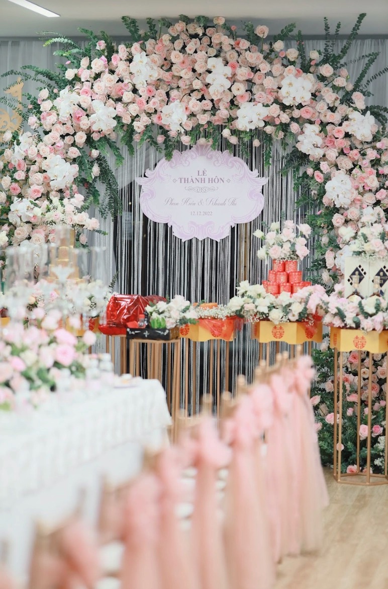 Sáng 12/12, lễ ăn hỏi kết hợp lễ thành hôn của Khánh Thi - Phan Hiển đã chính thức được tổ chức tại nhà riêng ở TP.HCM dưới sự chúc phúc của đông đảo khán giả, bạn bè và người thân. Qua những hình ảnh được chia sẻ, có thể thấy Khánh Thi - Phan Hiển đặt rất nhiều tâm huyết vào ngày đặc biệt này. Không gian buổi lễ được trang trí như một khu vườn cổ tích thu nhỏ với 15.000 bông hoa hồng tươi và vài trăm ký hoa lá các loại khác. Bản thân Phan Hiển cũng là người rất yêu cây cối, hoa lá, nên anh đã dành nhiều công sức để tạo nên không gian cưới đầy lãng mạn.