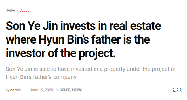 Đây có thể chỉ là một sự trùng hợp đơn thuần vì Son Ye Jin đầu tư bất động sản không phải là chuyện lạ lẫm, còn công ty của bố Hyun Bin cũng là một đơn vị tiếng tăm trong giới. Tuy nhiên, cũng có những fan cho rằng mối quan hệ giữa Hyun Bin và Son Ye Jin thực sự trên mức tình bạn và nữ diễn viên cũng giữ mối quan hệ thân thiết với gia đình "bạn trai" nên đã đầu tư vào bất động sản đó.