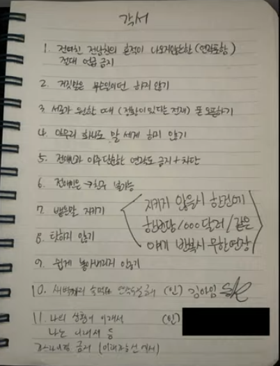 Chồng cũ Kim Sae Ron phủ nhận chuyện thao túng, kiểm soát Kim Sae Ron, chiếm quyền điều khiển các tài khoản của cô. Anh cho biết giữa họ có 1 bản cam kết, nhưng đó là điều tự nguyện giữa những người yêu nhau và họ đồng thuận ký vào. Ngoài ra, anh cũng cung cấp bản viết tay, cho biết cố diễn viên viết từ điều 1 đến 9, còn anh viết điều 10 và 11.