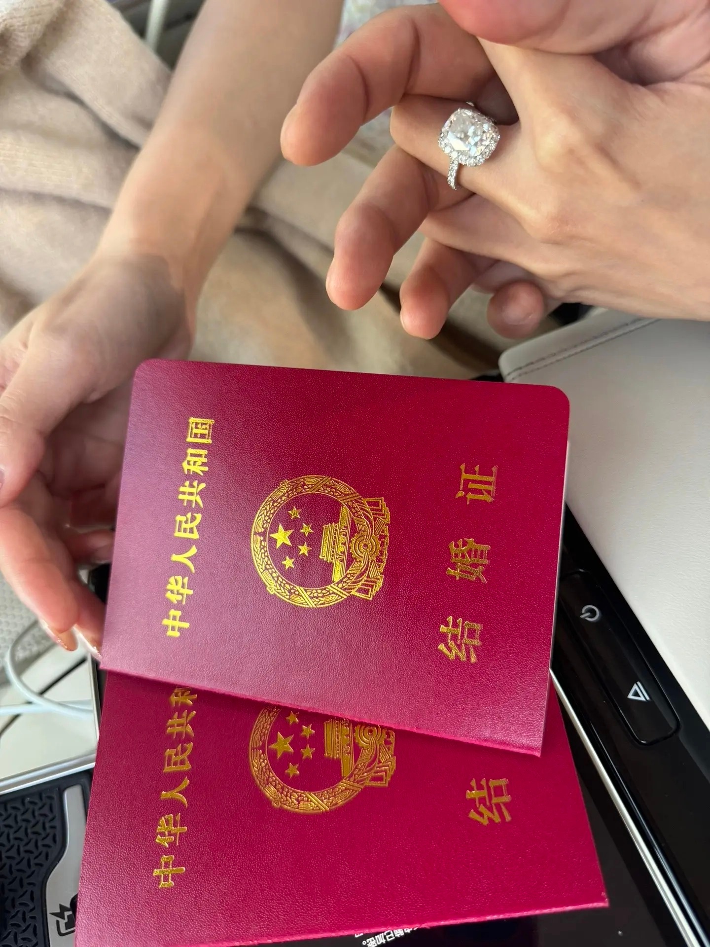 Không chỉ vậy, Uông Tiểu Phi còn tiện thể "flex" chiếc nhẫn kim cương cỡ khủng anh mua dành tặng vợ mới cưới.