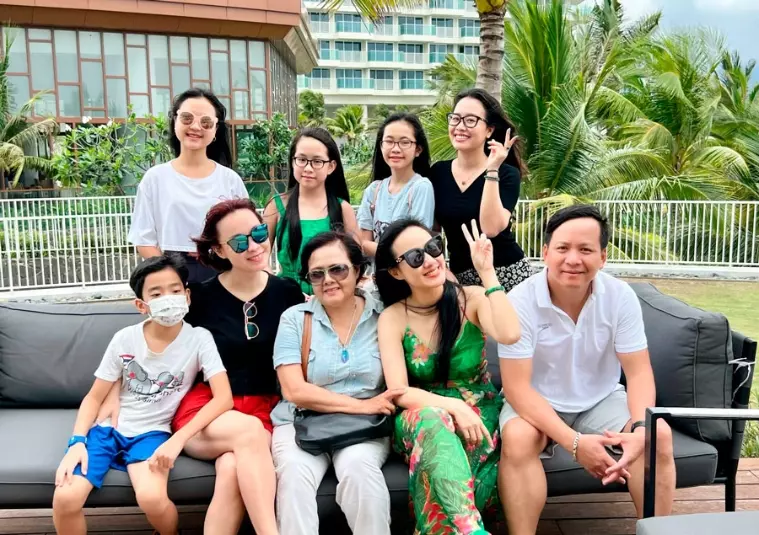 Bức ảnh đăng khoảnh khắc bên người thân, chồng và con gái của BTV Hoài Anh lại gây chú ý hơn cả. Nữ BTV nổi tiếng hóm hỉnh viết: ‘’Tập đoàn sâu rau đoàn tụ sau khi tất cả đã trải nghiệm àm F0. Bí quyết mau khỏe là lạc quan nhưng không chủ quan và mặc màu xanh để có nhiều vitamin bạn nhé''.