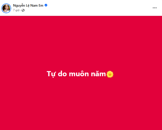 Sau đó, Nam Em có loạt động thái trên trang cá nhân ẩn ý việc đã chia tay, đang trong trạng thái "tự do", đồng thời chị gái sinh đôi của cô cũng đăng bài chúc mừng về việc này.
