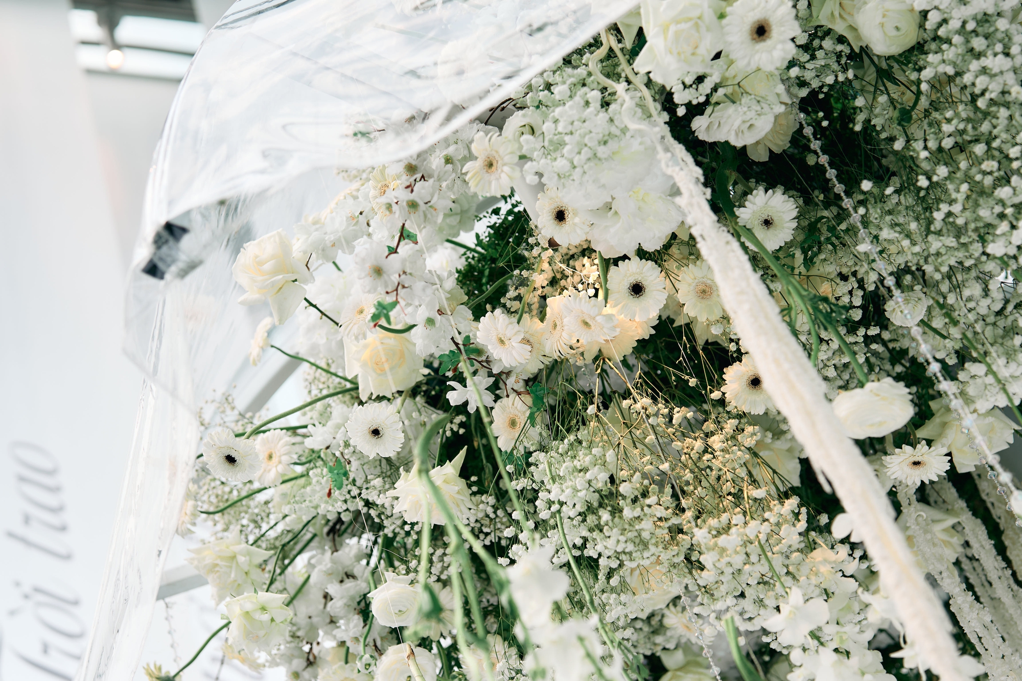 Bên cạnh visual cực phẩm của Vũ Cát Tường, một chi tiết khác khiến dân tình chú ý chính là không gian tổ chức lễ thành đôi. Bối cảnh lãng mạn với những câu hát mang đậm dấu ấn của giọng ca Yêu Xa được in trên phông nền, kết hợp cùng hiệu ứng ánh sáng nhẹ nhàng tạo nên một khung cảnh đậm chất nghệ thuật.