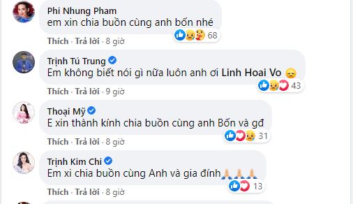Điều đáng nói, đám tang của NS Chí Tài - người bạn diễn và cũng là tri kỷ suốt hơn 20 năm của NS Hoài Linh cũng chỉ vừa mới diễn ra hơn 1 tuần. Nỗi đau này chồng chất nỗi đau kia, chứng kiến Hoài Linh đang phải chịu đựng quá nhiều mất mát, dàn sao Việt cũng như rất nhiều cư dân mạng không khỏi xót xa, ai nấy đều gửi lời chia buồn và động viên nam nghệ sĩ giữ gìn sức khỏe, sớm vượt qua nỗi đau này.