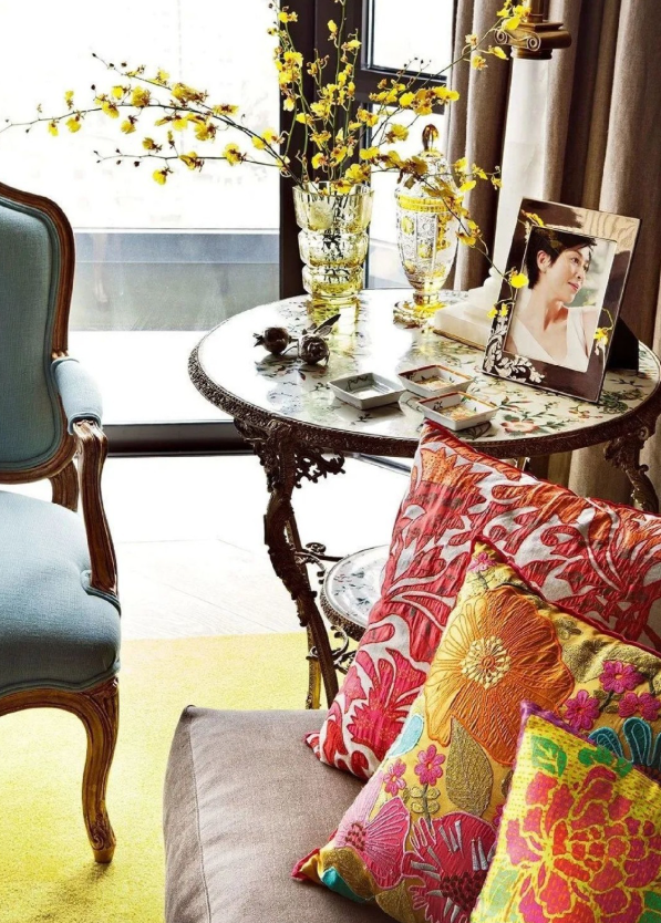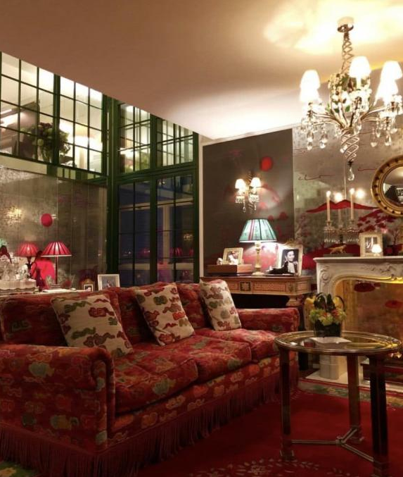 Nghe nói chính là bậc thầy chủ nghĩa hoàn hảo Trương Thúc Bình đã giúp chọn vải cho căn nhà này, đặt làm riêng rèm cửa và ghế tựa, nhiều họa tiết cũng do ông đặc biệt lựa chọn. Tóm lại có hai điểm chính: Sự kết hợp giữa Trung Quốc và phương Tây khiến đồ nội thất trở nên cực kỳ đắt đỏ.