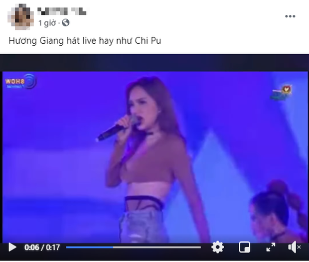 Mới đây, trên một group Facebook chuyên "hóng chuyện", netizen đã "đào mộ" lại đoạn clip Hương Giang hát live từ tận năm 2017. Đoạn clip dài 17 giây được cắt từ màn trình diễn gốc của Hương Giang, và netizen đã đặt nó với tiêu đề đậm mùi... mỉa mai: "Hương Giang hát live hay như Chi Pu". Chi Pu rất đẹp và Hương Giang cũng thế, nhưng so sánh giọng hát của Hương Giang với Chi Pu thì...