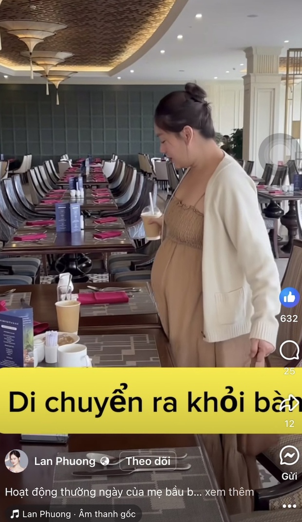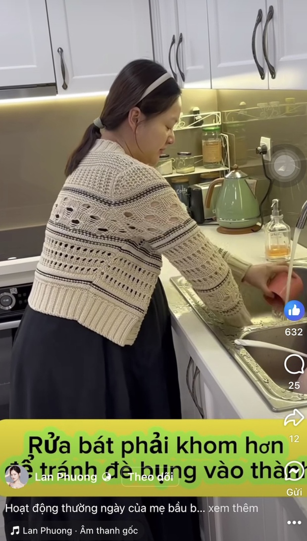 Mới đây, diễn viên Lan Phương vừa đăng tải đoạn clip ghi lại những khoảnh khắc đời thường của cô khi mang bầu ở tuần cuối thai kỳ. Do bụng bầu lớn, Lan Phương đã gặp phải không ít khó khăn từ việc đi lên cầu thang, đứng lên khỏi bàn ăn, di chuyển ra khỏi bàn, lên xe, xuống xe, rửa bát...