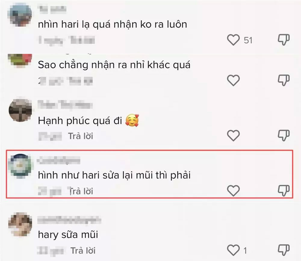 Sau khi gia nhập showbiz Việt và kết hôn với Trấn Thành, Hari Won ngày càng nhận được nhiều lời khen vì nhan sắc thăng hạng. Được biết, người đẹp đã chủ động giảm cân để có được gương mặt và thân hình hoàn hảo hơn. Dẫu vậy, chiếc mũi cao vút và chiếc cằm nhọn hoắt khác xa với thời "chân ướt chân ráo" vào nghề đã khiến Hari Won vướng tin đồn phẫu thuật thẩm mỹ.