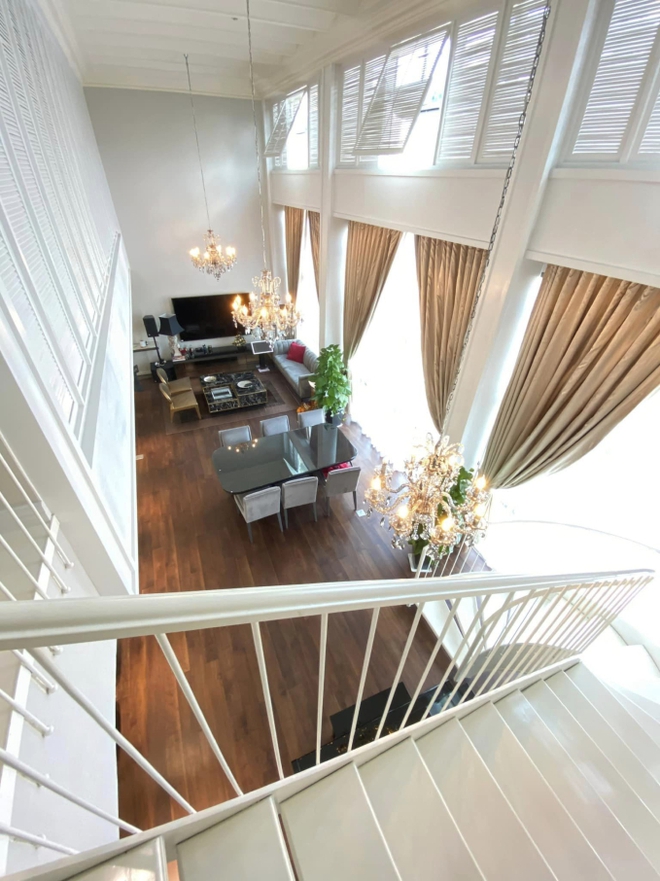 Penthouse của Trương Ngọc Ánh được thông tầng bởi 2 căn hộ và có tổng diện tích lên đến hơn 300m2. Tuy nhiên, nội thất lại không quá cầu kỳ mà thiên về sự đơn giản, tinh tế, tạo cảm giác gần gũi. Cô chủ yếu lựa chọn những món đồ thuộc tone màu trắng, xám, đen nhằm toát lên vẻ thanh lịch, hiện đại, trang nhã cho ngôi nhà.