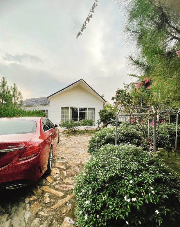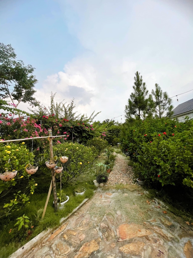 Không chỉ mua nhà riêng, Đỗ Duy Nam còn xây tặng ba mẹ một căn nhà vườn có diện tích gần 900m2. Trong đó, nhà ở có diện tích 120m2, bao quanh là cây cối và vườn cực rộng chẳng khác gì một công viên thu nhỏ. Gần như được phủ kín một màu xanh, lối vào được phủ đầy hoa.