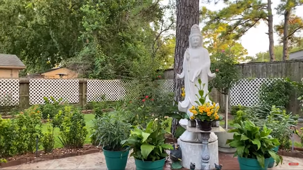 Ở vườn sau, danh ca Thanh Tuyền trồng nhiều cây cổ thụ và đặt cả hòn non bộ, cùng tượng Quan Âm lớn để thờ phụng. Vườn tược luôn được cắt tỉa sạch sẽ và bài trí ngăn nắp, gọn gàng.