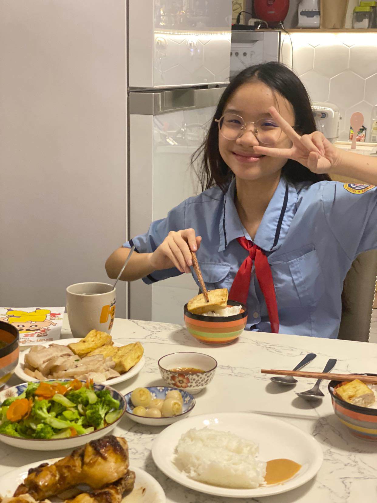 Thu Phượng bộc bạch: "Hai ba mẹ đưa em đi thăm quan 2 trường cấp 3 mà em đặt nguyện vọng thi năm tới. Nhanh quá và cũng hạnh phúc lắm".