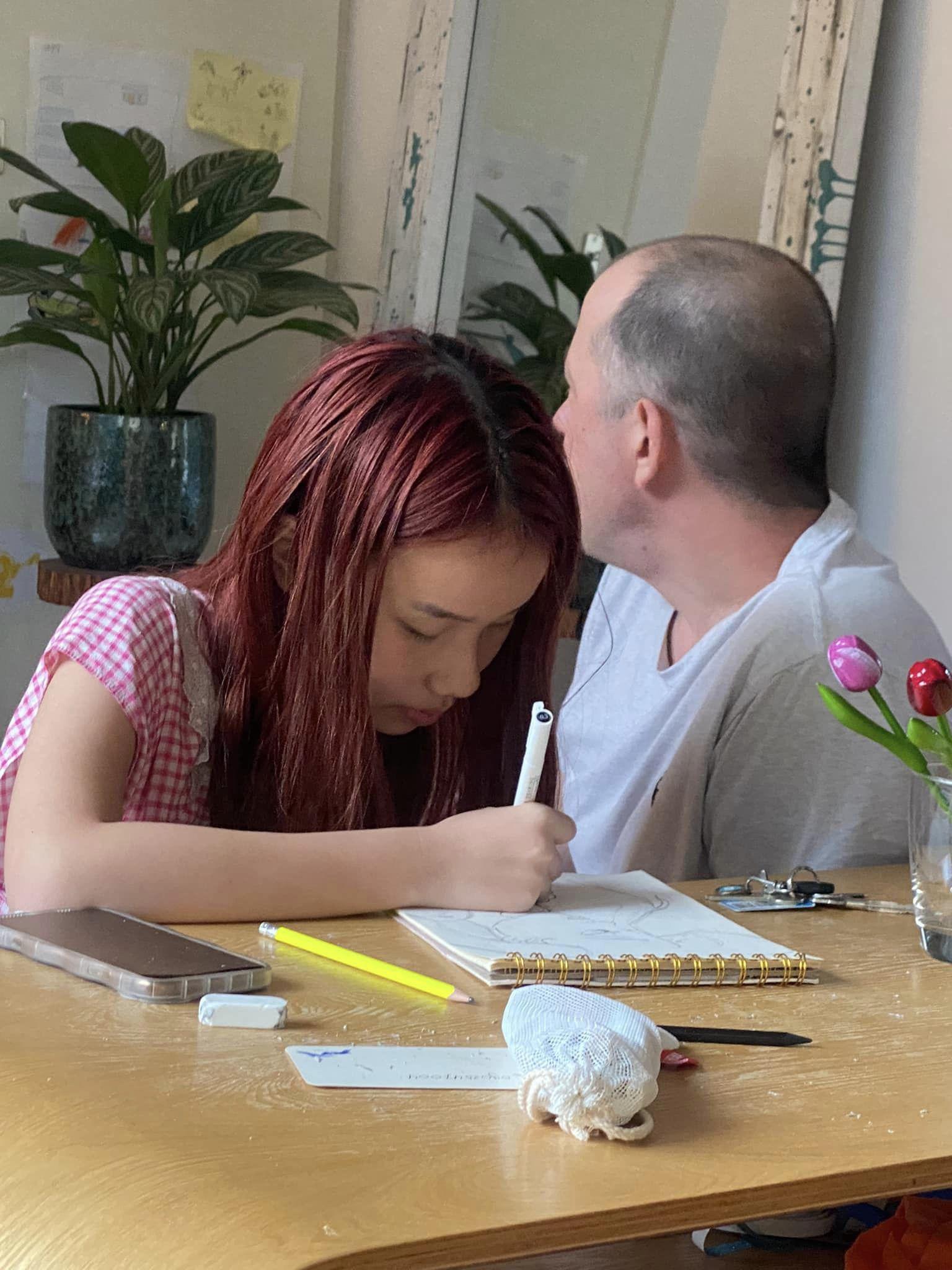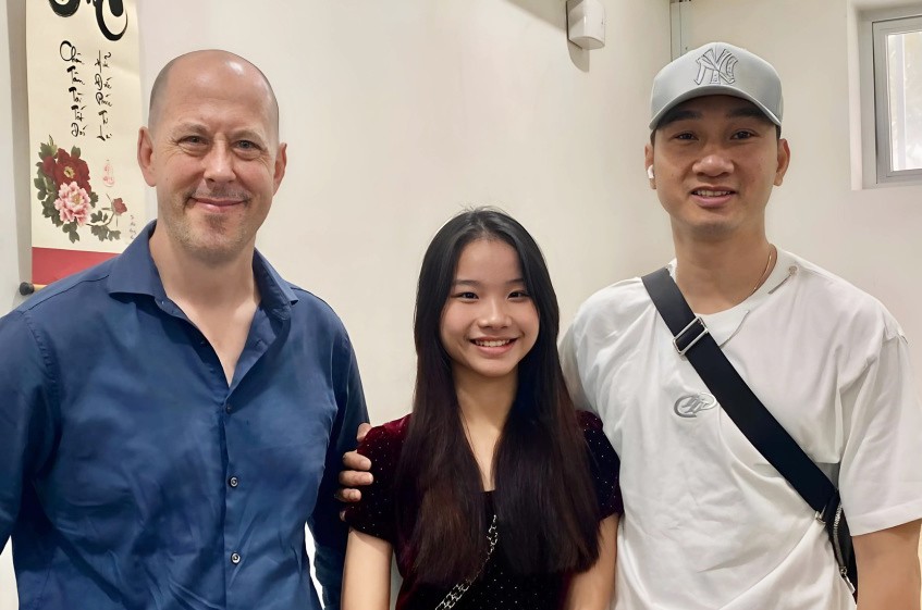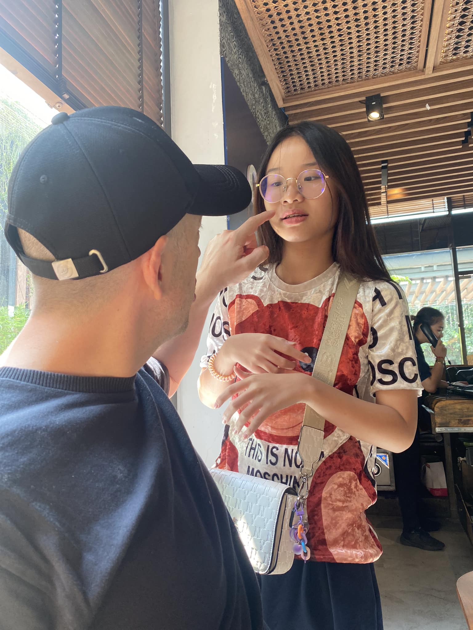Thu Phượng chia sẻ: "Mẹ dạy hát ở nhà. Ba Bull đưa em đi học đội tuyển Văn cả sáng, chờ em tan học đưa em đi xỏ khuyên tai cho xinh xắn và đưa em đi ăn trưa.