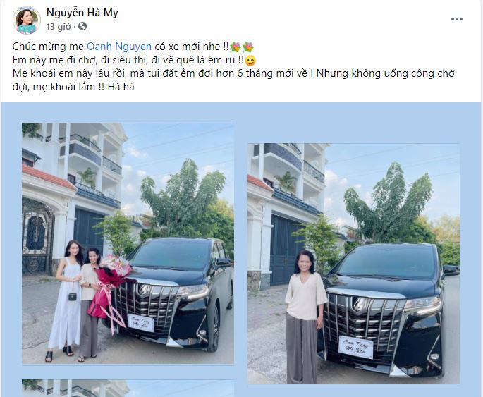Mới đây, trên trang cá nhân, Sam vừa khiến dân tình được một phen ố á khi khoe chiếc xe hơi sang trọng mà cô vừa mua tặng mẹ để...đi chợ. "Chúc mừng mẹ có xe mới nhe! Em này mẹ đi chợ, đi siêu thị, đi về quê là êm ru! Mẹ khoái em này lâu rồi, mà tui đặt ẻm đợi hơn 6 tháng mới về! Nhưng không uổng công chờ đợi, mẹ khoái lắm! Há há", Sam hào hứng viết.