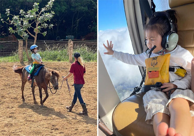 Ở tuổi lên 4, Alaia Chen tận hưởng những giá trị tốt đẹp nhất mà bố mẹ mang lại. Cô bé được đi máy bay riêng tới những nơi nghỉ dưỡng đắt đỏ, được học cưỡi ngựa, được trải nghiệm những kỳ nghỉ thú vị nhất. Có con khi tuổi tác không còn trẻ, Trần Quán Hy cho thấy anh cuồng con hết mức.
