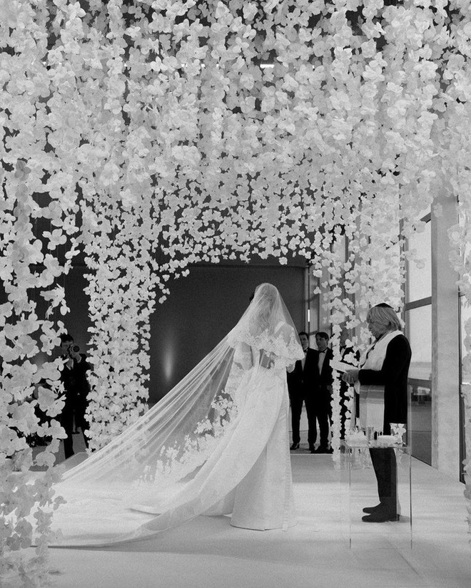 Trong bức ảnh được Brooklyn Beckham đăng trên trang cá nhân, Nicola Peltz diện chiếc váy cưới cầu kỳ của thương hiệu Valentino, chuẩn bị cùng chồng thề nguyện và về chung một nhà.