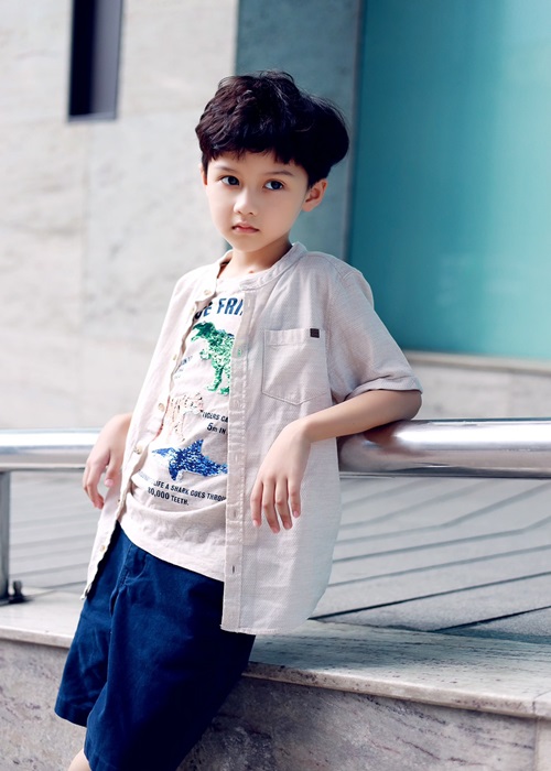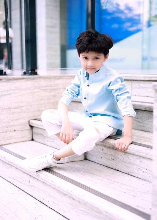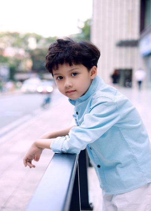 Trong bộ ảnh mới, bé Nem - con trai của Huyền Lizzie khiến trái tim khán giả tan chảy khi tạo dáng đúng chuẩn hot boy nhí.
