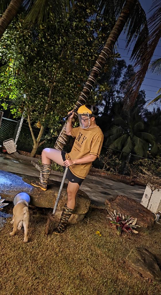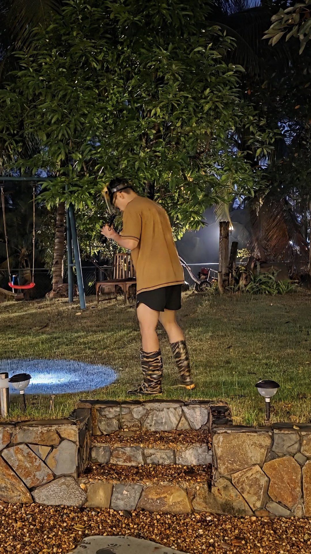 NSND Xuân Bắc trên trang cá nhân đã chia sẻ khoảnh khắc mình và con trai chống bão: " Bố con em thăm vườn sẵn sàng chống bão các bác ạ. Sinh viên năm nhất dần phải tập làm chủ gia đình đi là vừa. Dứt điểm là như thế! ".
