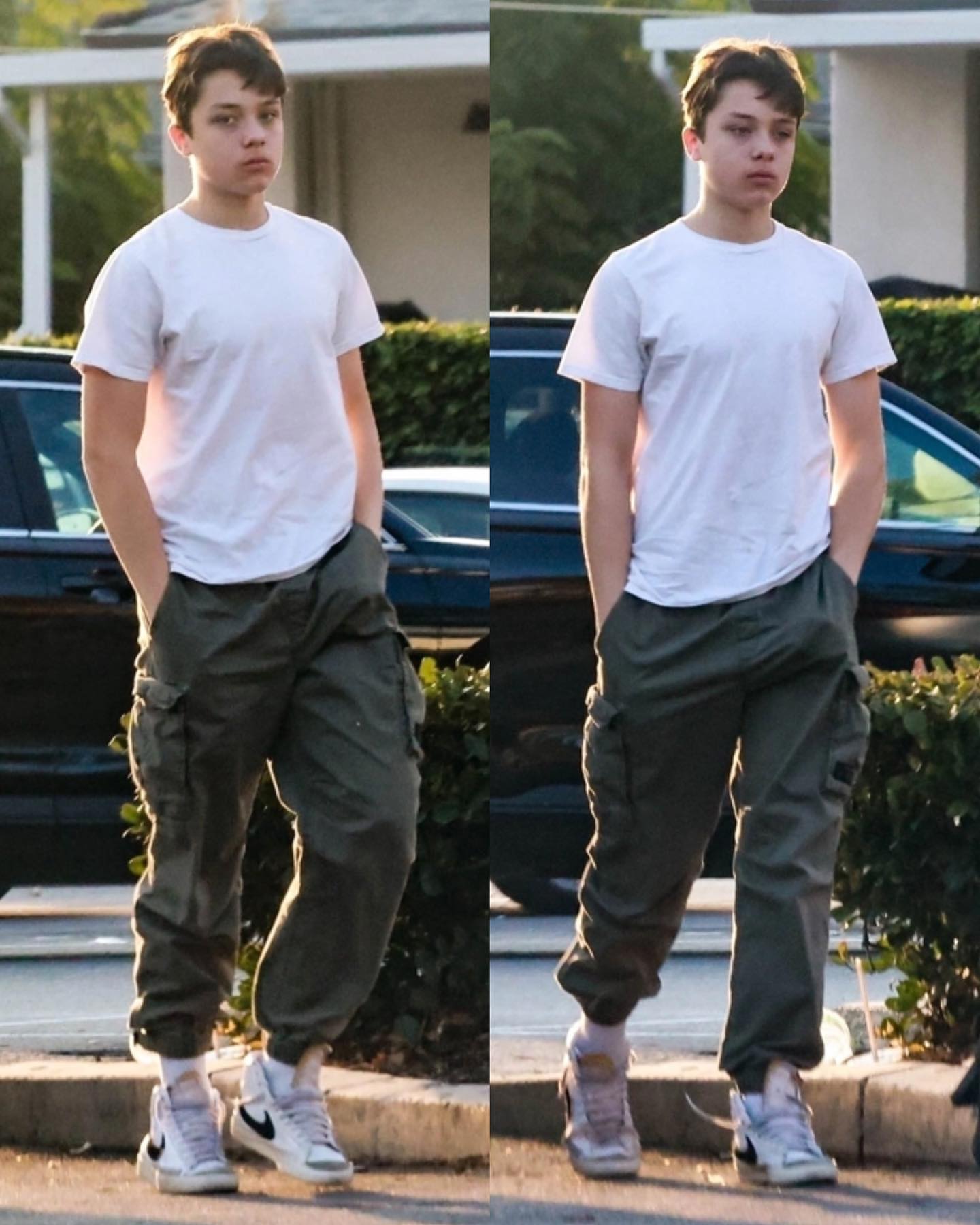 Cụ thể, cậu con trai ruột 16 tuổi của Angelina Jolie xuất hiện trên phố với vẻ ngoài nam tính, tay cầm theo dụng cụ sau khi kết thúc buổi tập boxing.